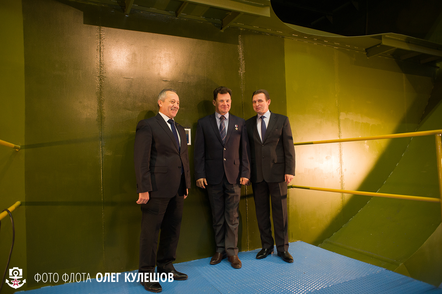 22. Командующий СФ адмирал Владимир Королев, гендиректор ЦКБ "Рубин" Игорь Вильнит и гендиректор предприятия «Севмаш» Михаил Будниченко готовятся к закладке памятной доски.