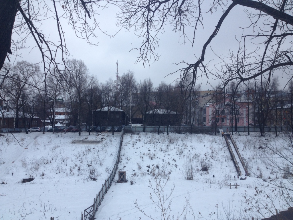 Выглядят сейчас они вот так, в центре снимка оба дома, вид с улицы Герцена. Обратите внимание на забор в овраге, здесь давно должна была начаться глобальная стройка, но пока никаких работ не наблюдается.