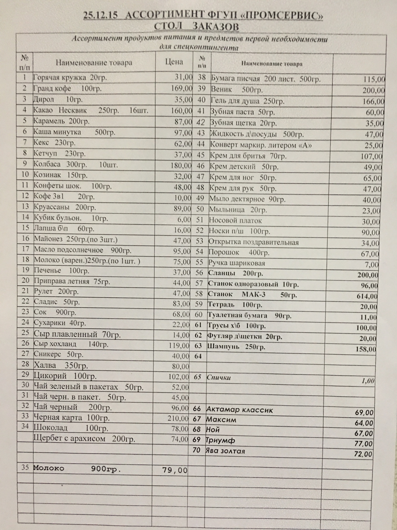 Я думаю, что будет вернее в данной публикации не пересказывать те замечания, которые мы сделали, а обратить внимание родственников на то, что им сегодня предоставляет СИЗО.