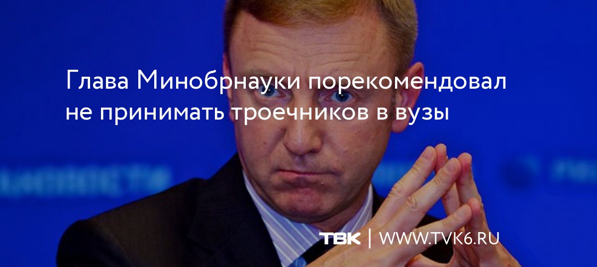 «В целом у нас доступность высшего образования не сокращается. Но это не означает, что не должны повышаться требования к качеству подготовки абитуриентов.Троечников мы не рекомендуем принимать. Они, как правило, не способны осваивать программы высшего образования», – цитирует агентство слова главы Минобрнауки Дмитрия Ливанова на заседании Совета Российского союза ректоров.