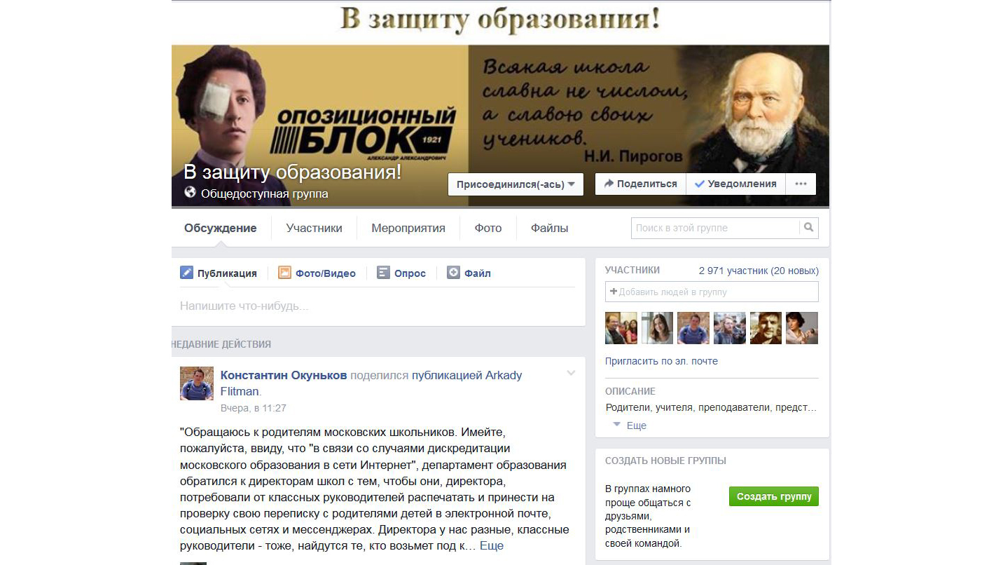 Дмитрий Шаповалов: Да, эта группа была создана где-то в 2012 году в связи с тем, что мы называем кампанией слияния школ и детских садов в Москве. На этой волне она была создана. В основном, это были родители.