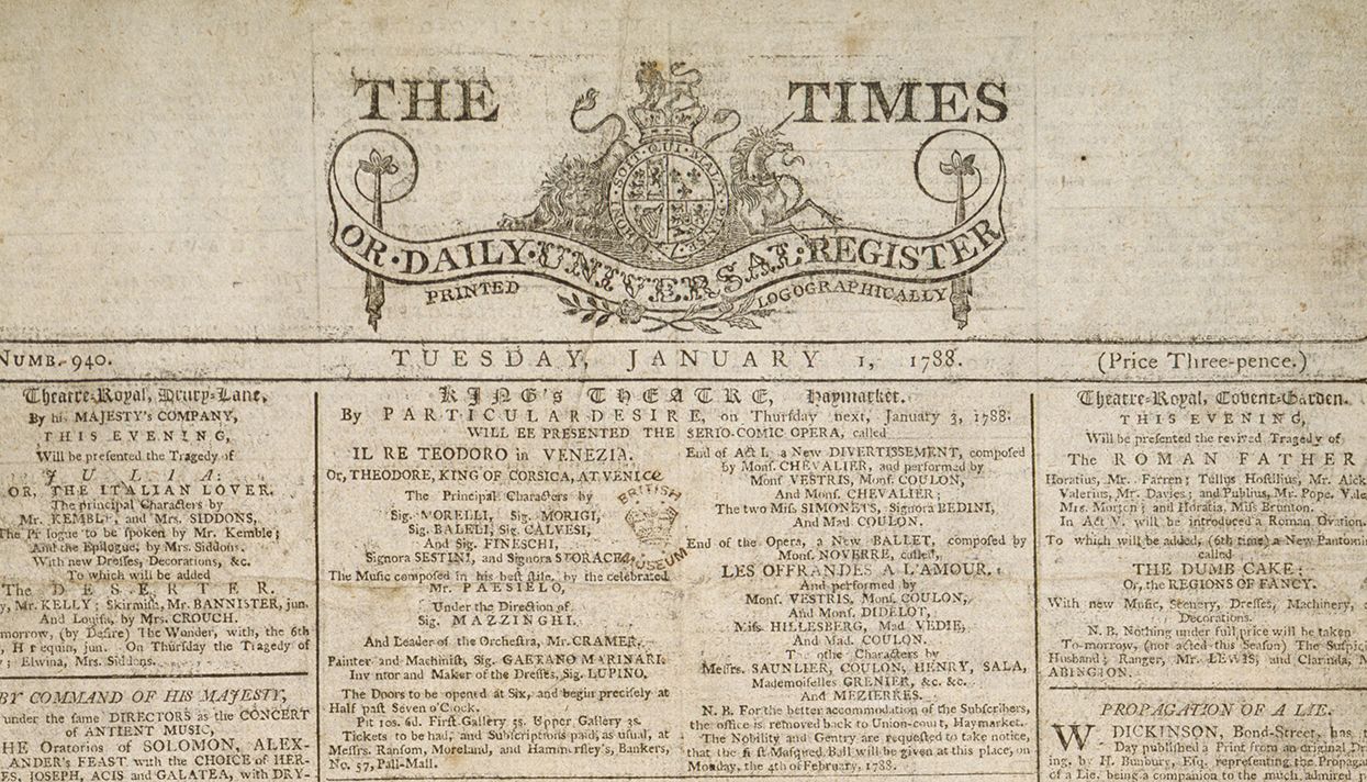 Что случилось 1 января? 1785 год. Напечатан первый номер газеты The Times