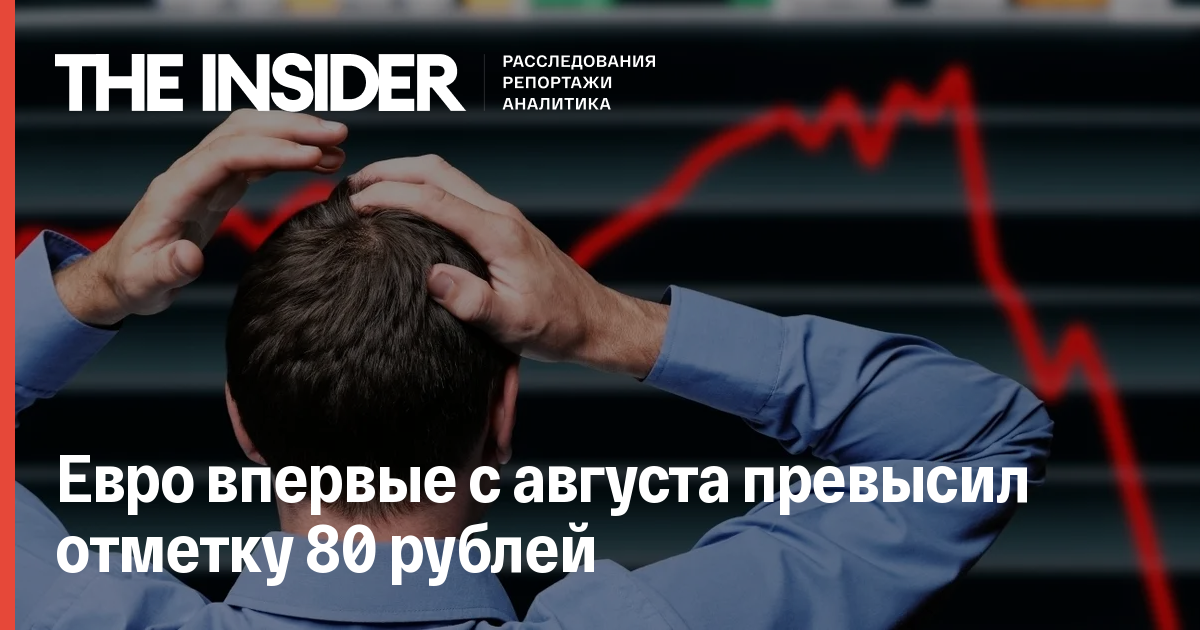 Евро достиг, а затем превысил отметку 80 рублей на Московской бирже впервые с августа. Доллар вплотную подошел к рубежу 73 рубля.