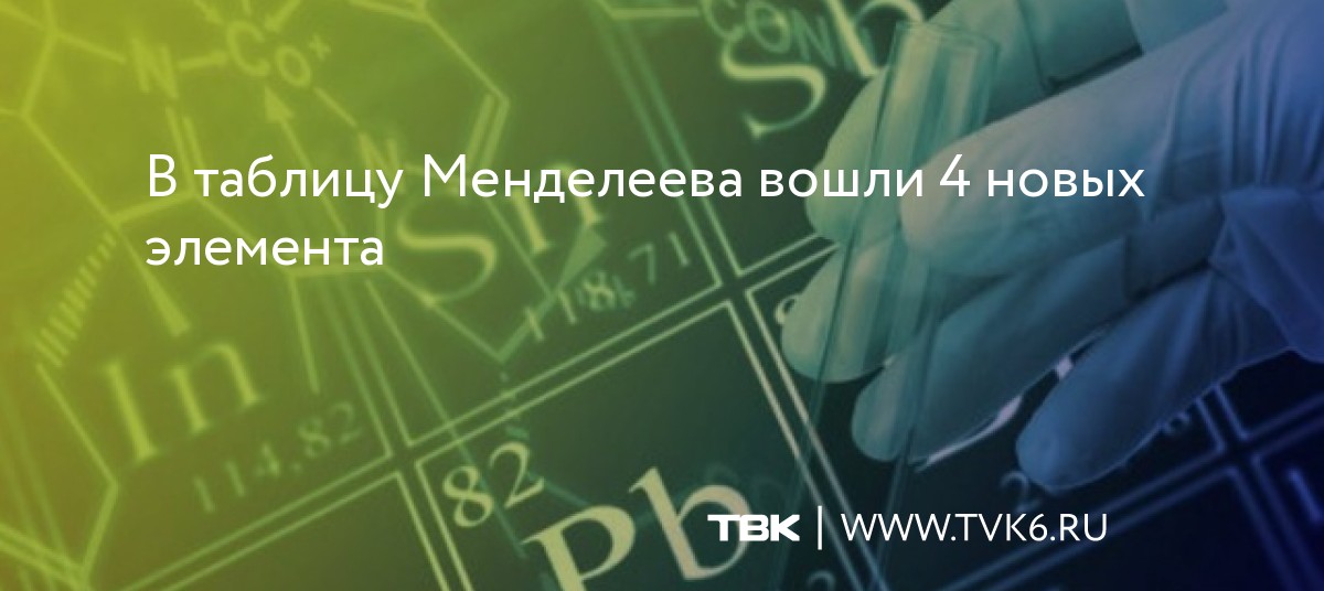 Это первое расширение периодической таблицы с 2011 г., когда были добавлены 114 и 116-ый элементы, названные флеровием и ливерморием, сообщает РБК.