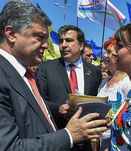 3. Украина. Одесса. 8 июля 2015. Президент Украины Петр Порошенко и губернатор Одесской области Михаил Саакашвили (слева направо) во время встречи с жителями города. Николай Лазаренко/пресс-служба президента Украины/ТАСС
