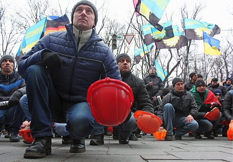 1. Украина. Киев. 23 декабря 2015. Представители профсоюзов работников угольной промышленности во время акции протеста у здания Верховной рады Украины с требованием сохранения своих рабочих мест и отставки правительства. Сергей Резник/ТАСС