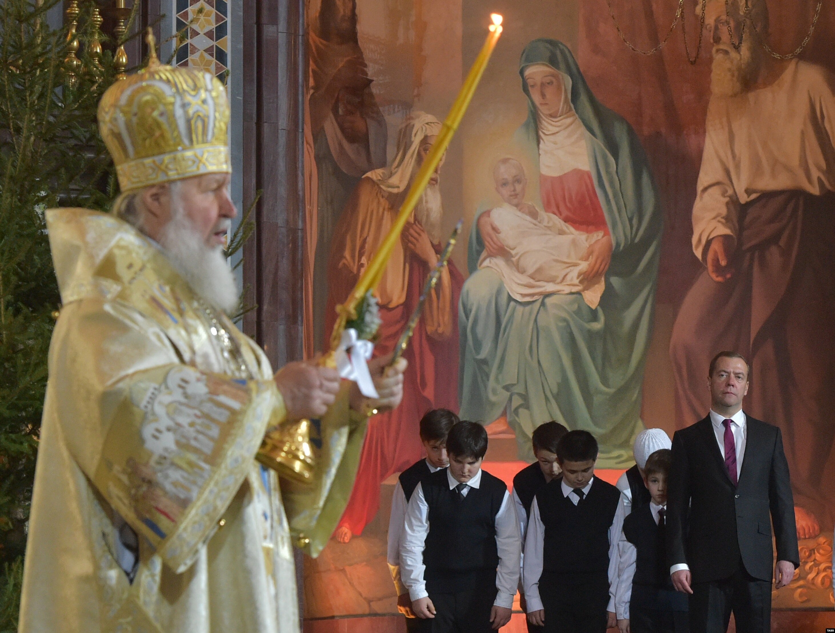 В московском храме Христа Спасителя в ночь на четверг состоялась рождественская служба. Торжественное богослужение по традиции возглавил Патриарх Московский и всея Руси Кирилл. Ранее в своем рождественском послании предстоятель Русской православной церкви призвал верующих молиться о прекращении вражды на Украине, а также о христианах других стран, страдающих от вооруженных конфликтов.
