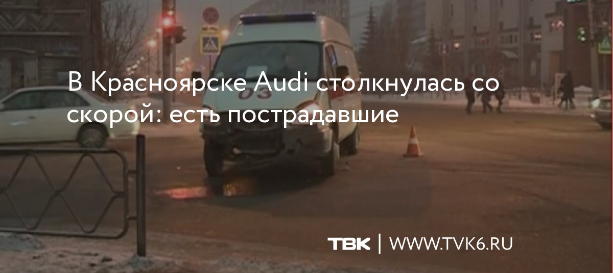 Как Новостям ТВК сообщили в пресс-службе ГИБДД Красноярска, сгодня, 9 января, карета «Скорой помощи» двигалась на запрещающий сигнал светофора с включёнными проблесковыми маячками и со спецсигналом, когда на перекресток выехала Audi.