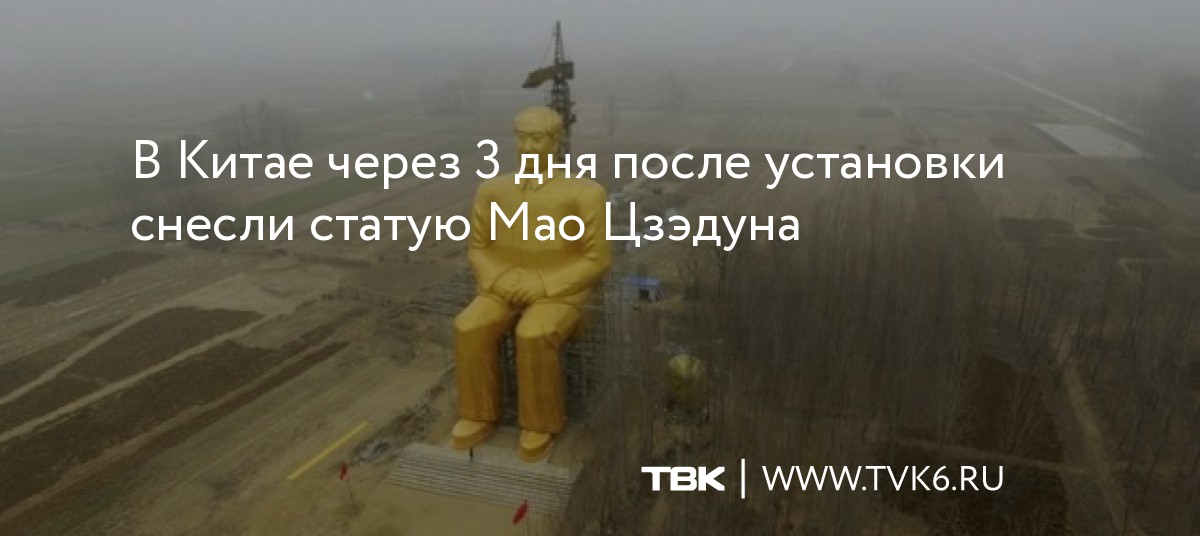 В китайской провинции Хэнань 8 января снесли 37-метровую статую Мао Цзэдуна, которую возвели несколько дней назад – 5 января 2016 года, сообщает Bangkok Post.