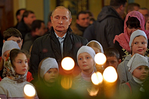 Фото: Россия. Тверская область. 7 января 2016. Президент России Владимир Путин (на втором плане) во время Рождественского богослужения в храме Покрова Богородицы в деревне Тургиново. Алексей Дружинин/пресс-служба президента РФ/ТАСС