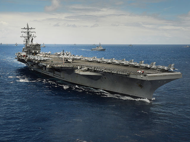 В октябре 2015 года этот авианосец уже принимал участие в военно-морских учениях в Южной Корее. На нем размещены около 80 боевых самолетов и около 5,4 тысячи военнослужащих. В настоящее время Ronald Reagan находится в Японии на базе в Йокосуке.