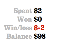Игроку дается 100 долларов, которые будут тратиться на покупку билетов вновь и вновь. Выигранные деньги также пойдут на приобретение новых билетов.