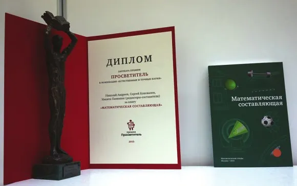 Лауреат премии «Просветитель» 2015 года — сборник «Математическая составляющая». «Это уникальная и необходимая книга», — считает математик и лингвист Владимир Андреевич Успенский, автор «Апологии математики». В 2010 году она тоже удостоилась премии «Просветитель».