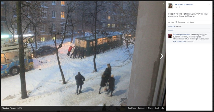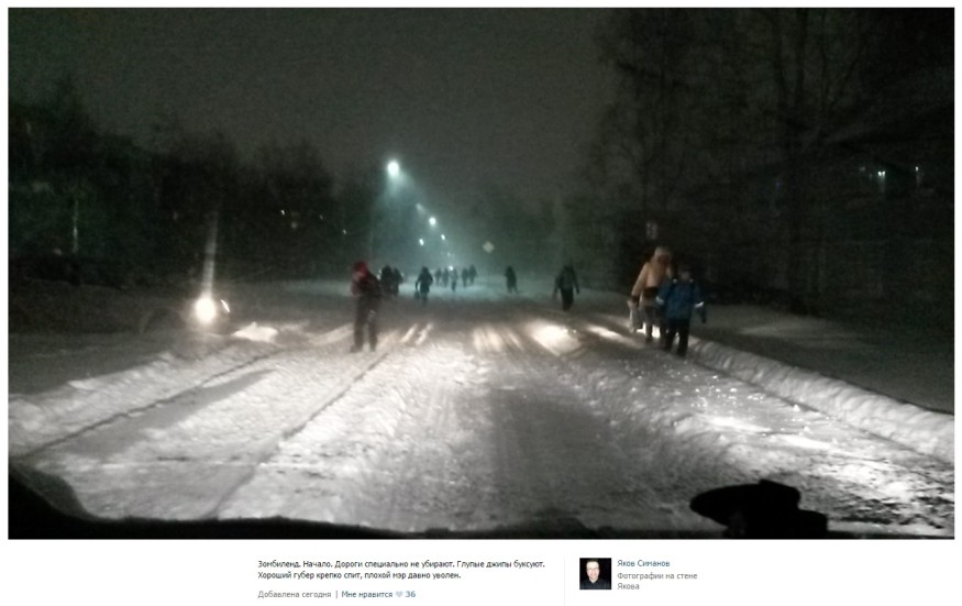 В течение всего дня основным развлечением горожан оставалась борьба со стихией. Коммунальные службы им не сильно в этом помогали. Если некоторые основные магистрали и были вычищены от снега, то второстепенных дорог, не говоря уже о межквартальных проездах и дворовых территориях, не касался ни ковш трактора, ни, кажется, лопата дворника. Некоторые горожане подошли к ситуации с юмором. По крайней мере такое впечатление складывалось по комментариям в соцсетях.