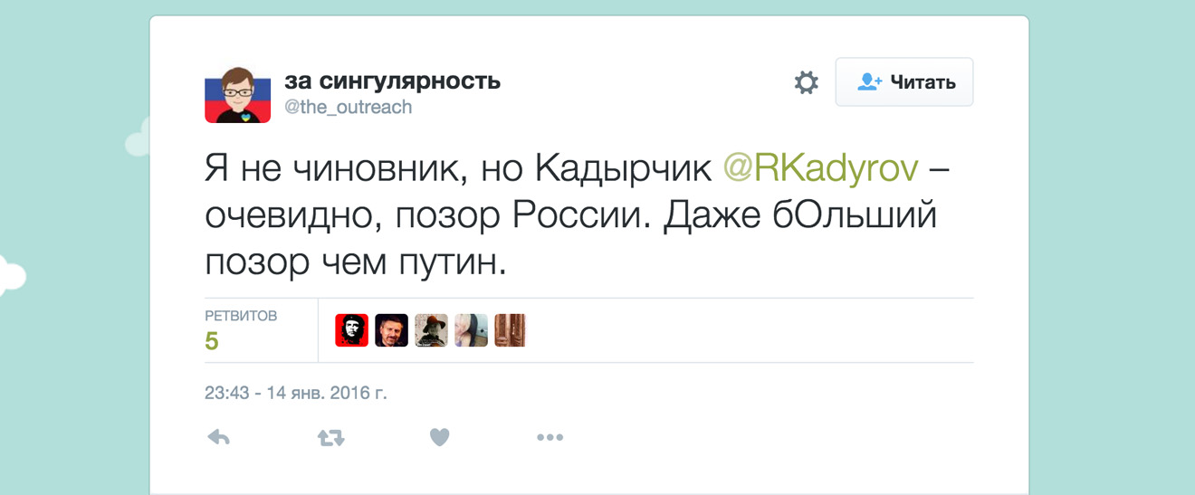 «Проблема тут не в этом, а в самолюбии чеченского руководителя. Если человека нельзя найти и снять с него штаны, как это практикуется в высокодуховной республике, то кушать спокойно уже нельзя. Надо исхитриться и выложить хоть фейк, хоть что-нибудь — лишь бы показать, как он контролирует всю страну, от Терека до Енисея. И до окрестностей Кремля, конечно».