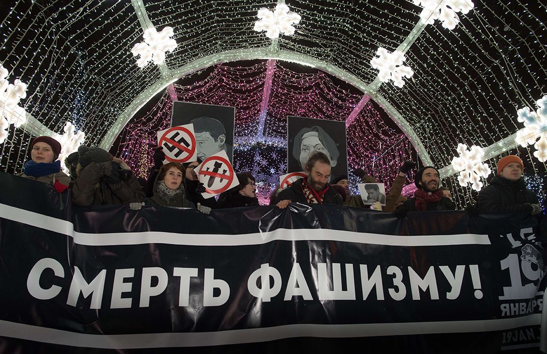 Вечером во вторник, 19 января, в Москве прошло традиционное шествие памяти адвоката Станислава Маркелова и журналистки Анастасии Бабуровой. Они были застрелены в 2009 году Никитой Тихоновым из «Боевого объединения русских националистов», которому помогала его подруга Евгения Хасис. Около 500 человек прошли маршем от Новопушкинского сквера до места убийства на Пречистенке, скандируя «Стас и Настя должны были жить!» и «Долой фашизм, гомофобию, сексизм!» На акции был специальный корреспондент «Медузы» Даниил Туровский.
