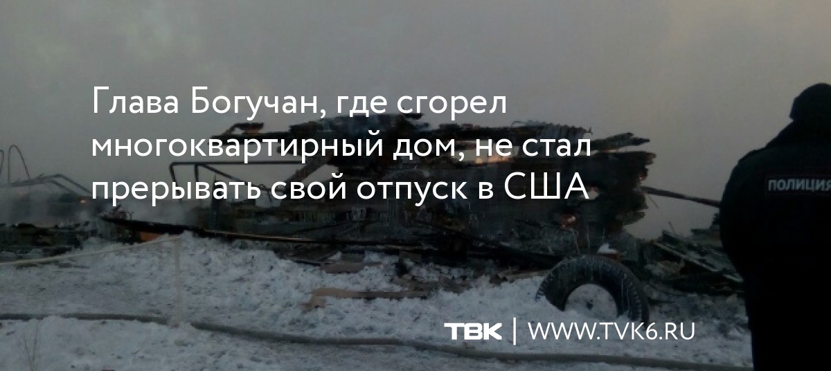 Глава Богучан, где сгорел многоквартирный дом, не стал прерывать свой отпуск в США