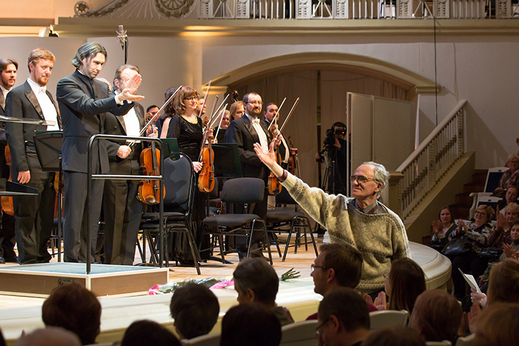 На пятом году своего правления Юровский решил, что пора приучать филармоническую публику и музыкальные институции к загадочному иностранному понятию composer in residence, по большому счету не имеющему адекватного перевода на русский язык. И первым таким композитором, с которым Госоркестр будет сотрудничать в течение года или больше, как раз и назван Александр Вустин. Это очень красивый выбор. Просто образцово-показательный. Композитор старшего поколения, ученик Фрида и Фере, участник авангардной постсоветской, возглавляемой Эдисоном Денисовым Ассоциации современной музыки в 90-е, яркий, даже пламенный автор и невероятно скромный человек, почти неизвестный за пределами своего цеха. Он не помнит, когда его последний раз исполнял симфонический оркестр, он не умеет кланяться, принимать и дарить цветы, публика меж тем заходится в овации, в общем, все как в кино.