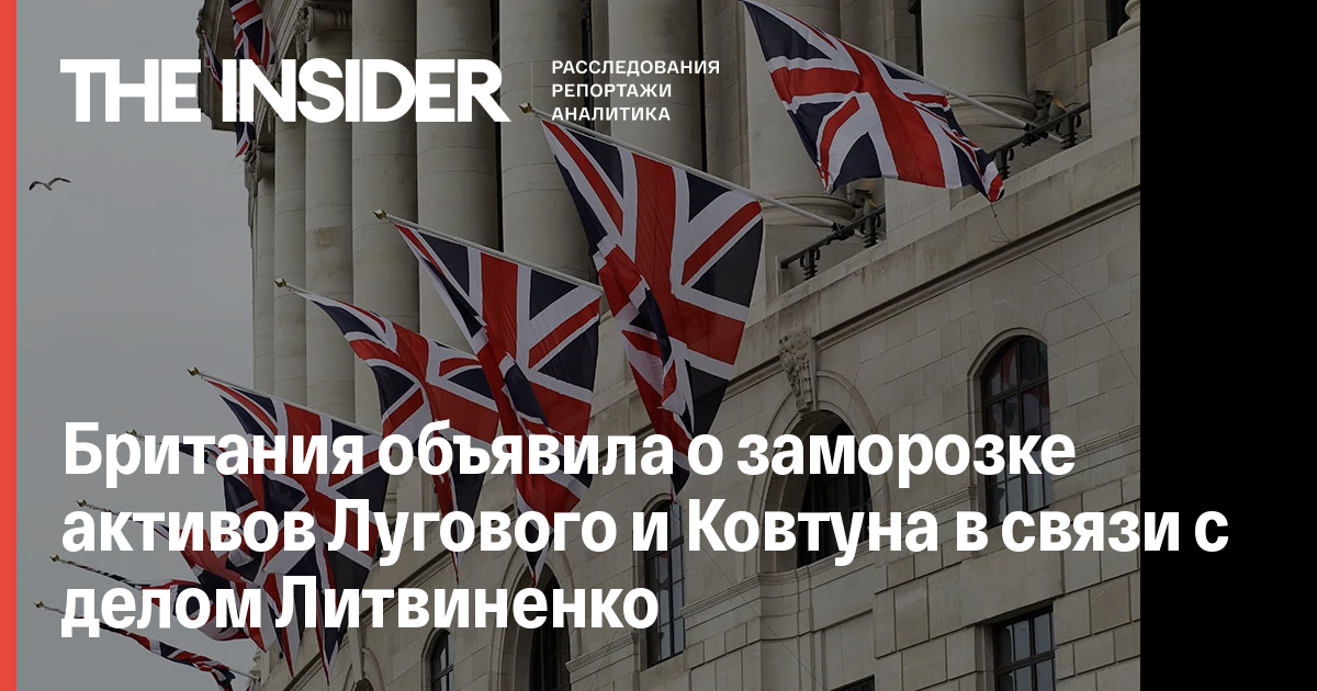 Правительство Великобритании объявило о заморозке активов Андрея Лугового и Дмирия Ковтуна, которые были признаны виновными в убийстве Александра Литвиненко , пишет AP.