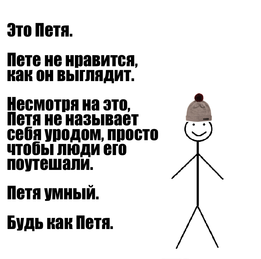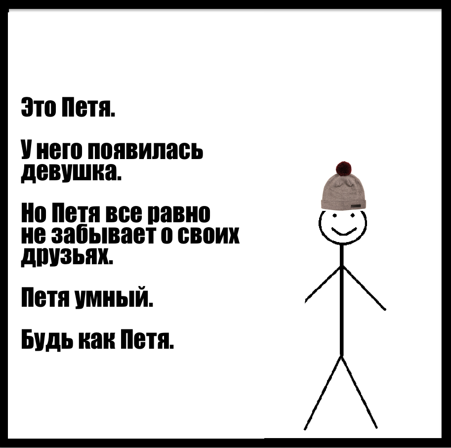 Мем про Билла уже переводят на арабский (там он Билал), малайский (Рашид) и испанский (Хосе). «Медуза» решила адаптировать Билла для читателей. Встречайте — Петя. Он умный. Будьте как Петя.