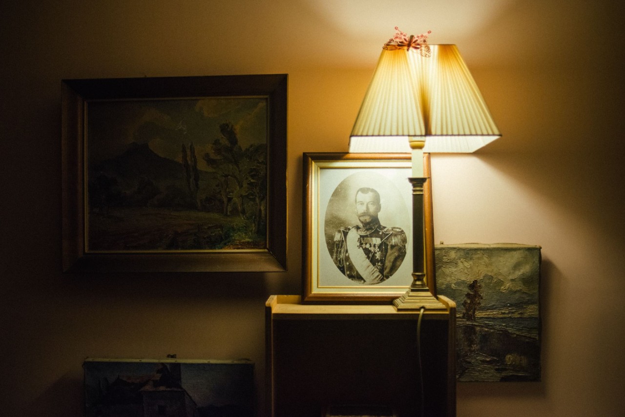 Больше Александр Петрович про любовницу ничего не говорит, зато сыпет забавными историями, которые на французский манер называет «анекдотами», — про Федора Шаляпина или про иконописца Леонида Успенского, которым восхищается. В его комнате по стенам висят иконы. «Здесь икона святого Александра Невского, а здесь, — он показывает на афишу, — была замечательная выставка, первая выставка икон эмиграции».