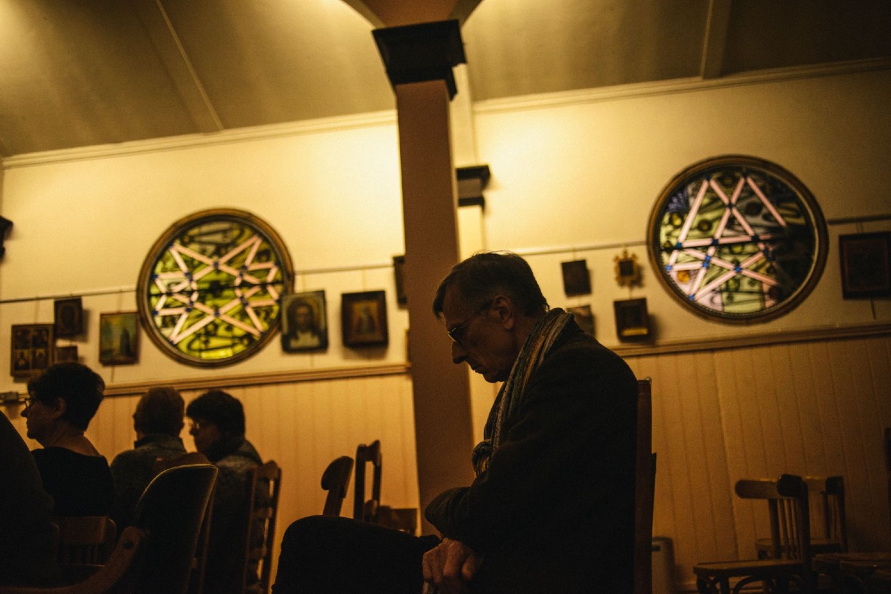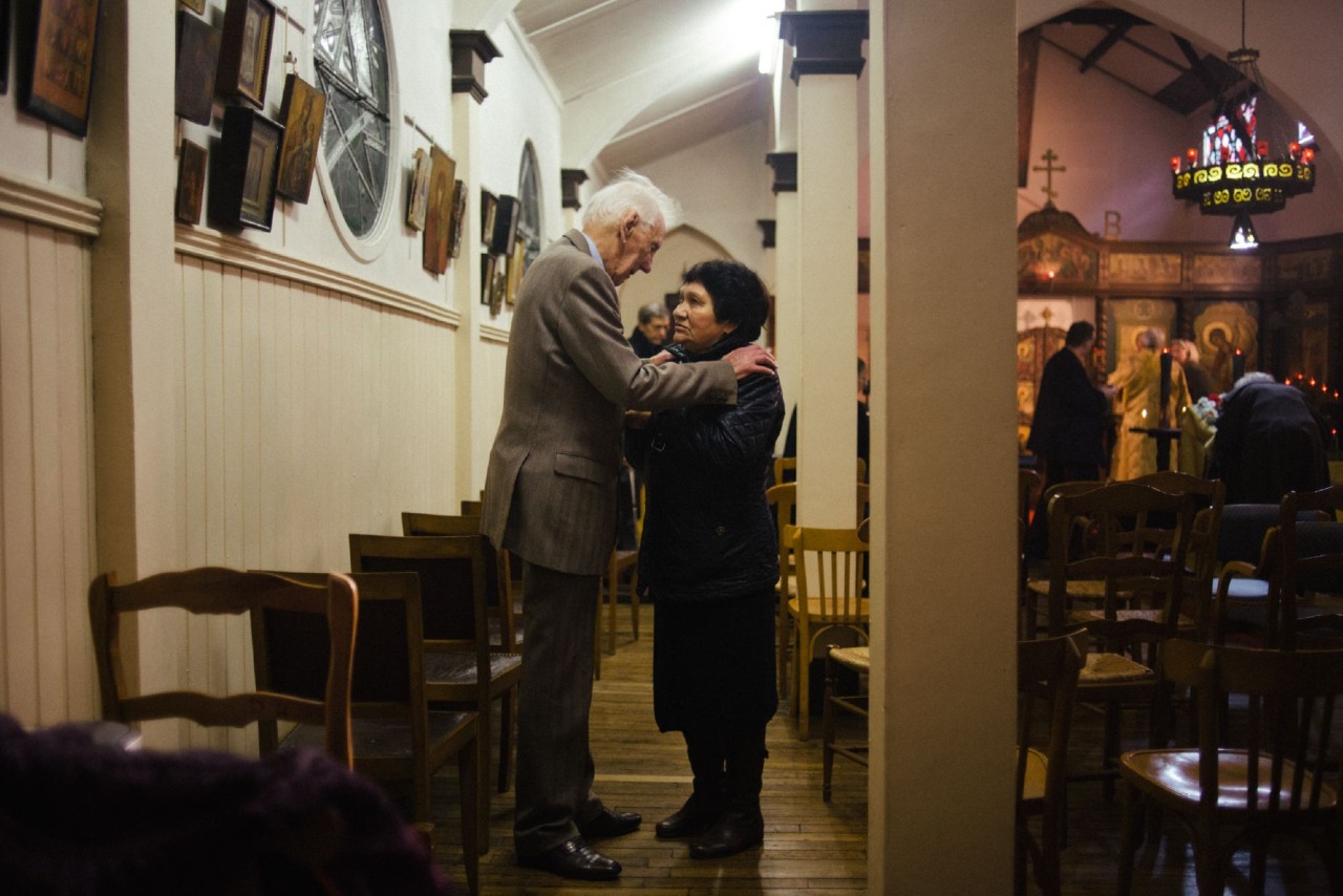 Служба идет на русском и на французском, Евангелие читают по-французски, «Отче наш» поют на двух языках. В полупустой церкви ровными рядами расставлены разномастные стулья, как будто принесенные сюда из чьих-то квартир. Под «Символ веры», который здесь тоже поют по-французски, двери церкви распахиваются, и внутрь ввозят трех старушек на инвалидных колясках. Высохших, с тонкими птичьими руками, в аккуратных платьях и по-детски высоко поднятых гольфах. Одна из них радостно машет нам рукой.