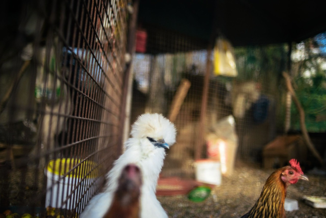 «Уй ты моя маленькая, ты моя лапочка, мои хорошенькие, — наклоняется она к своим питомцам. — Ну вот, курочки. А это кролик — лапен. Вырос, такой дубина».