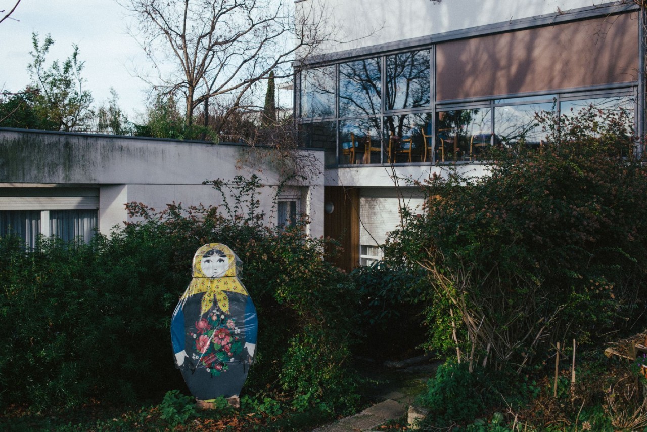 На деле мы долго плутали по маленьким улицам симпатичного французского городка, пока не вышли к черным железными воротам, за которыми обнаружилось похожее на больницу современное серое здание из стекла и бетона с большой парковкой. А уже за ним, когда мы поднялись по по холму мимо белого козырька с русской надписью «Читальня» и французским указателем на «Вишневый сад», — увидели старый корпус Dolgopoloff. Он был назван в честь Николая Саввича Долгополова, русского врача, основавшего Земгор.