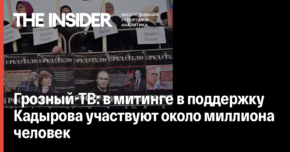 В Грозном проходит многотысячный митинг в поддержку главы Чеченской республики, по данным местного телевиденья, в нем приняли участие около миллиона человек. Участники намерены защитить чеченского лидера от нападок, в том числе, внесистемной оппозиции. Судя по фотографиям , протестующие вышли с лозунгами не только в поддержку Кадырова, но и с заявлениями против политика Ильи Яшина и музыканта Андрея Макаревича. Митинг проходит под лозунгами «Мы – за Владимира Путина!», «Мы – за Рамзана Кадырова!», «Не быть пятой колонне», «Навальный выбрал путь провальный». Участники акции, как передает «Грозный ТВ», заявляют о своей обеспокоенности усилением информационной войны против России со стороны либеральных СМИ.
