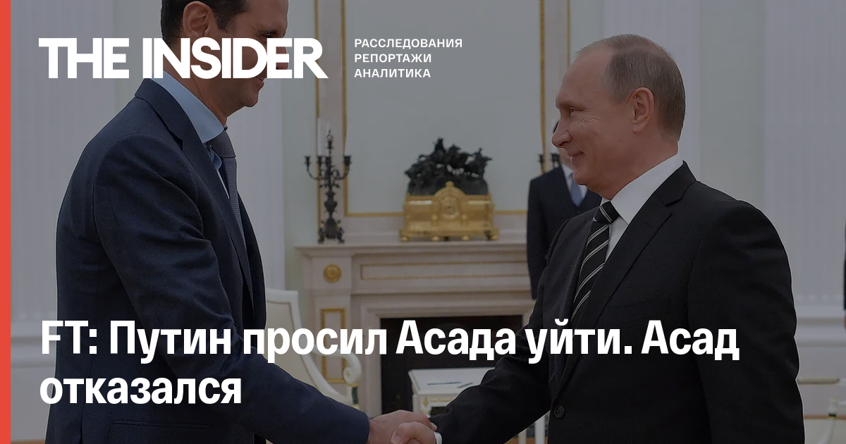 Владимир Путин в начале января попросил Башара Асада уйти в отставку, а глава Сирии возмущенно от такого предложения отказался, утверждает Financial Times со ссылкой на свои источники в западной разведке. Как пишет издание, с миссией в Дамаск ездил покойный начальник ГРУ Игорь Сергун.