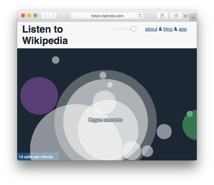 Правки статей в «Википедии» можно воспринимать и на слух, если каждое изменение представить в виде ноты. Получается очень релаксирующая музыка, попробуйте.