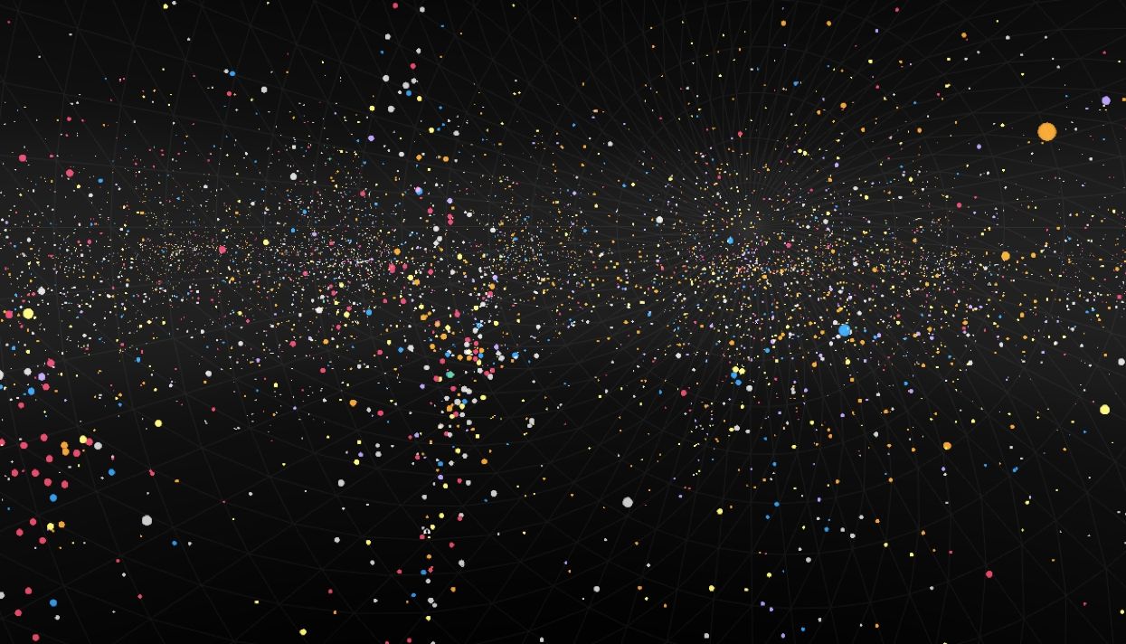 Трехмерная карта «Википедии», работающая прямо в браузере. Энциклопедия здесь — это галактика, а 100 тысяч самых популярных статей из нее — звезды, объединенные в туманности по интересам.