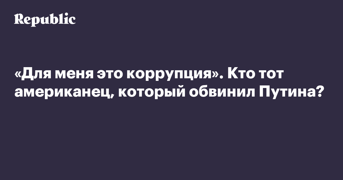 «Для меня это коррупция». Кто тот американец, который обвинил Путина?
