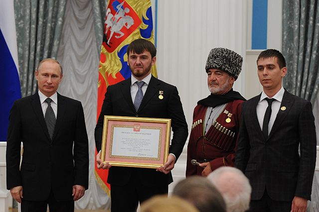 Фото: Саид Царнаев / РИА Новости / Scanpix Алибек Делимханов вручает главе Чечни Рамзану Кадырову награду — Звезду Ахмата Кадырова
