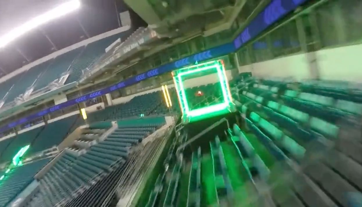 Издание Quartz опубликовало видео гонок дронов, снятое с камеры одного из них. Сама гонка прошла на стадионе во Флориде.