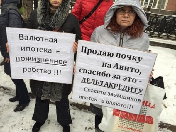 28 января в Москве вновь прошли акции валютных ипотечников, которые требуют у банков изменить условия выплаты кредитов, пересчитав подлежащие возврату суммы в рубли по курсу, актуальному на день заключения кредитного договора. Участники акции, прошедшей у офиса «Москоммерцбанка», уточнили, что согласны на прибавку к требуемой сумме 30 процентов, передает LifeNews. Управляющий директор «Москоммерцбанка», в свою очередь, заявил: «Сегодня мы озвучили инициативной группе из пяти заемщиков наши предложения. Мы предпринимаем все меры, чтобы решить проблему с валютными ипотечниками».