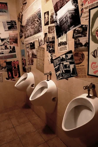 Выставка афиш в туалете "Гамбринуса". Фото В.Ильина.