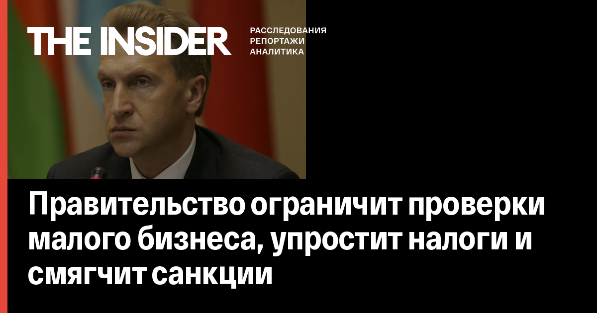 В распоряжении The Insider, оказался перечень мер по поддержке малого бизнеса (уже одобренный президентом), сформированный после встречи Игоря Шувалова с бизнесменами в рамках форума ОПОРы России «Малый бизнес – национальная идея?». Среди ключевых мер поддержки – повышение порога, за которым следует уголовное преследование за мошенничество, ограничение числа возможных проверок и систематизация неналоговых платежей.