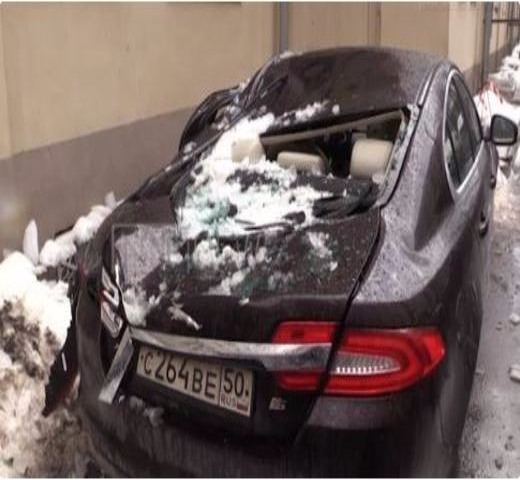 В Москве на Jaguar за 3 млн рублей упала глыба льда