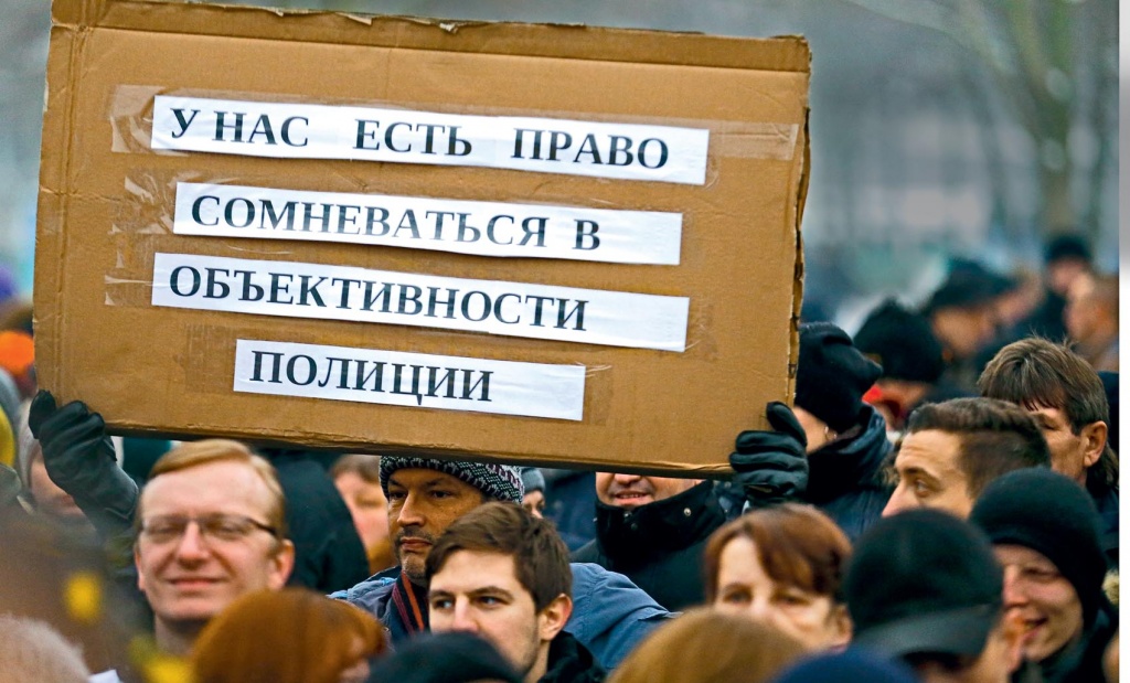 Получив разрешение на акцию протеста от полицейских, члены инициативной группы пробрались в центр толпы и начали выступать. Общались они с народом без мегафона, до стоявших в последних рядах доносились лишь обрывки фраз.