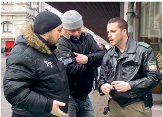 И вот к полиции направилась группа парламентеров — трое решительного вида мужчин среднего возраста. Оказывается, за 48 часов до проведения акции не было, как это положено по закону, подано уведомление о проведении митинга, а раз так — он считается несанкционированным. Полицейские, двое мужчин и одна женщина, были с переговорщиками вполне любезны и даже пообещали в порядке исключения оформить, не отходя от капота своей машины, запоздалую заявку, дабы легализовать акцию. Единственное, в чем отказали, так это в требовании немедленно пригласить к собравшимся обербургомистра города. Причину митинга организаторы объяснили так: «Трое мусульманских беженцев в Берлине похитили и тридцать часов глумились над девочкой российского происхождения».