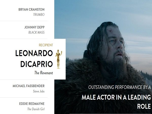 Конкуренцию Ди Каприо составляли Джонни Депп, Майкл Фассбендер, Эдди Редмэйн и Брайан Крэнстон.