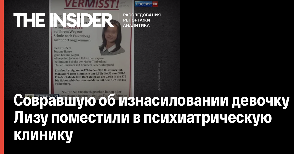 Рассказавшую об изнасиловании русскую девочку Лизу из Берлина, поместили в психиатрическую клинику. Об этом сообщила мать 13-летней школьницы в интервью журналу Der Spiegel.