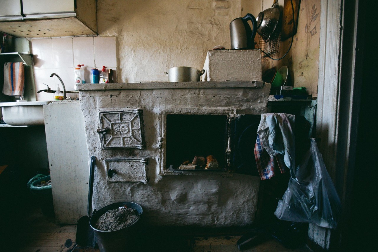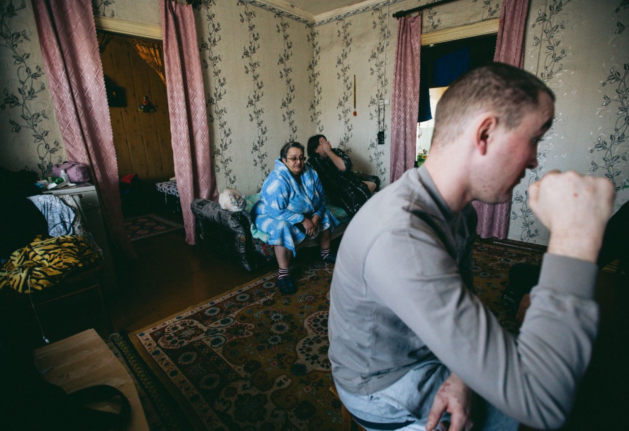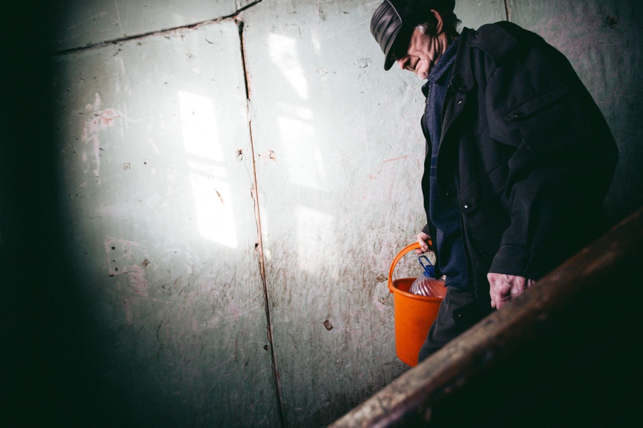 Валентин Федорович живет с внучкой, ее мужем и тремя правнуками в двухкомнатной квартире. Каждый день дядя Валя, как его называют соседи, по несколько раз ходит на колонку за водой. Вместе с мужем внучки они сделали в ванной некое подобие водопровода. Теплую воду заливают в конструкцию из самодельных труб. Не очень много, но для того чтобы помыть детей, хватает. После похода за водой Валентин Федорович топит печку. У каждой семьи из барака есть небольшой сарайчик напротив дома, где хранится уголь. Дядя Валя тихонько курит около большой печи и ждет, когда из школы вернется правнучка. Рядом с ним на стуле сидит кошка Муся.