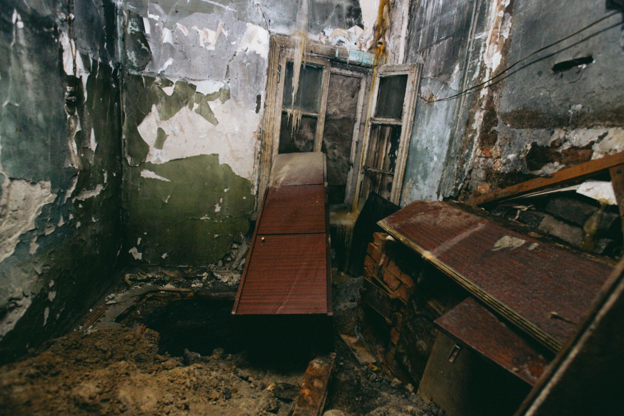 — Они рыли в подъездах и прямо у людей в квартирах на первом этаже, хотя по закону, если износ дома больше 60%, нельзя вообще никакие земельные работы даже рядом проводить, — объясняет Юрий. — Потом они решили перед домом, вплотную к стене, сделать яму глубиной в пять метров. В какой-то момент фундамент не выдержал и начал в эту яму сползать. Барак затрещал и немного просел. Угол дома держали ковшом экскаватора, пока дыру засыпали с помощью трактора. После этого рабочие все бросили. Несколько дыр на первом этаже не засыпали до сих пор. В одной из них все еще стремянка торчит. Мы с соседями до часу ночи стояли на улице и слушали, как скрипят стены дома. Вызвали спасателей. Они осмотрели дом и сказали: