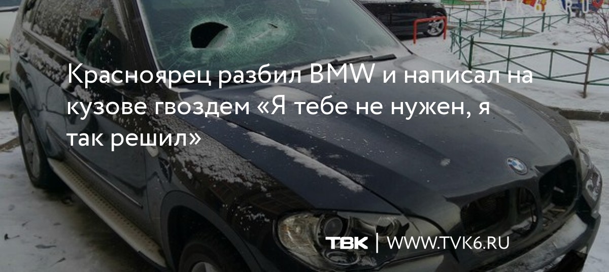 Красноярец разбил BMW и написал на кузове гвоздем «Я тебе не нужен, я так решил»