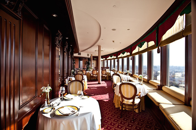 Зачем идти: Классический гостиничный ресторан в высотке — из панорамных окон действительно можно разглядеть всю Москву: удачное расположение на Смоленке и 23 этаж позволяют. В меню — лобстеры, копченый угорь, ризотто — но посетители (в основном романтические парочки, молодожены с родителями или дорогие юбиляры) все больше внимания уделяют друг другу, чем еде.
