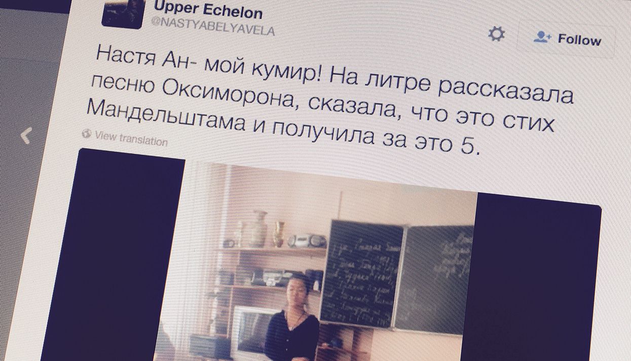 Школьница из Хабаровского края прочитала текст песни «Переплетено» российского рэпера Oxxxymiron, выдав его за стихотворение Осипа Мандельштама. Как утверждает издание HLEB, учитель не заметила подмену и поставила ученице 11 класса пятерку.
