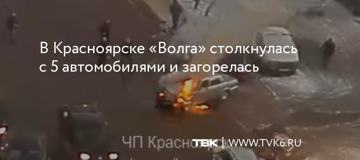 По данным пресс-службы ГУ МВД по Красноярскому краю, водитель «Волги» по неустановленным пока причинам потерял контроль над машиной, допустил столкновение с 5 автомобилями, после чего его машина загорелась.