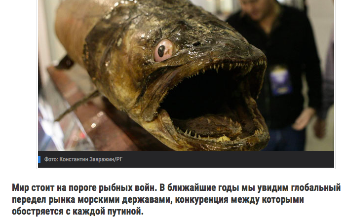 В рыбных войнах Россия рассчитывает на победу. Директор Всероссийского НИИ рыбного хозяйства и океанографии Михаил Глубоковский (sic!) говорит вот что: “Американского лосося можно переманить в российские воды. Это связано с инстинктом родного дома, благодаря которому рыбы возвращаются на места своего нереста. У нас есть идеи, как управлять этим процессом”.